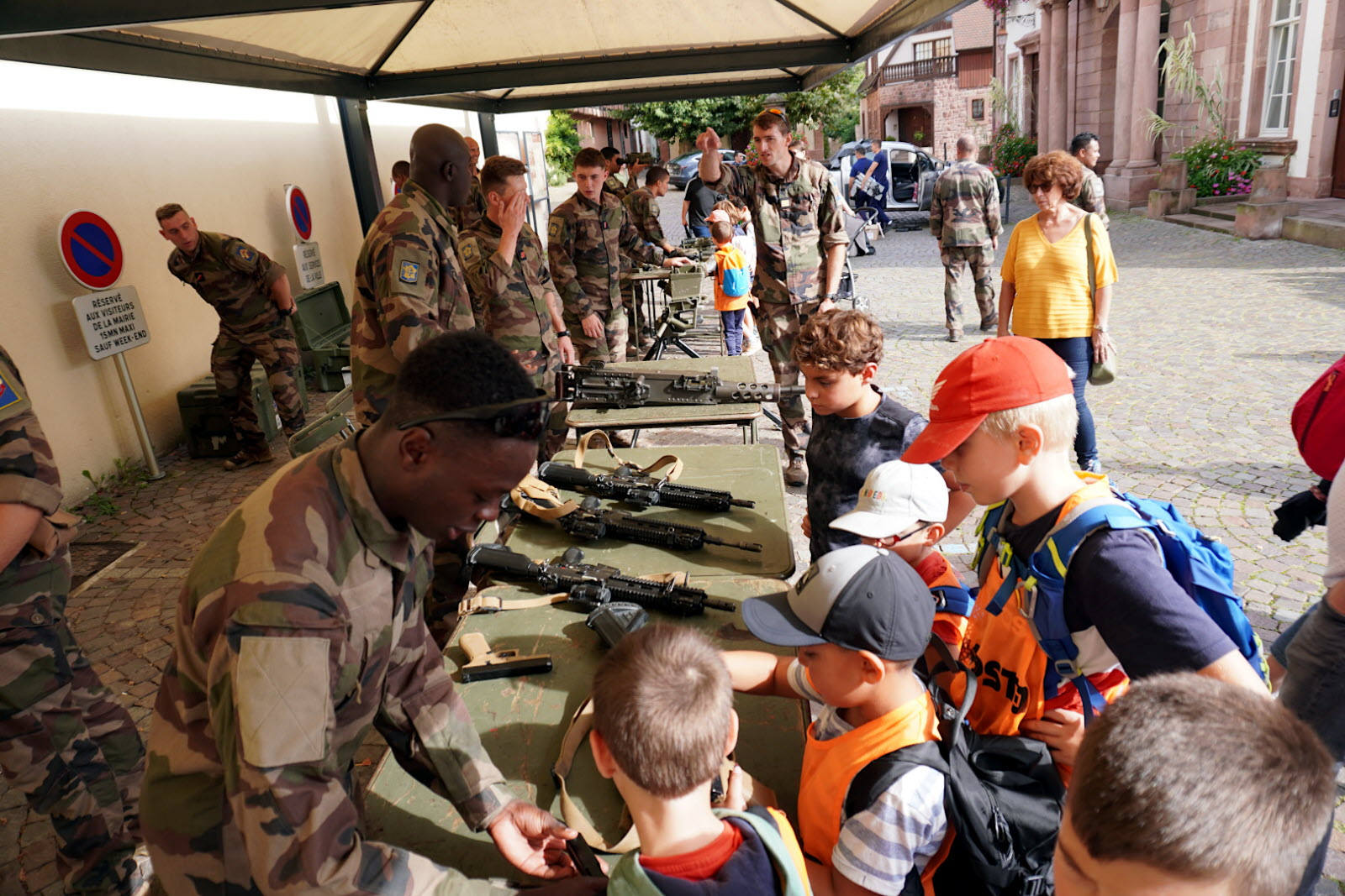 Les marsouins ont pu consacrer deux jours à leur ville marraine. Le 13 septembre, Riquewihr a montré à ses « filleuls » ce qui la caractérise. Et pour les vignerons, les vendanges représentent l’acmé de leur activité. Les militaires ont découvert, au cours de cette première journée les différents aspects de ce temps de récolte, étape cruciale de la fabrication du vin. « Il était donc normal, en retour, que cette deuxième journée du 14 septembre soit consacrée pour montrer aux viticulteurs et habitants de la petite cité médiévale, ce que l’on fait. » explique le capitaine Furcy, saint-cyrien, à la tête des 150 marsouins qui constituent la 3e compagnie.