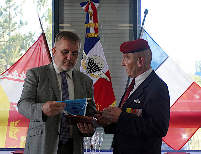 La venue de Thierry Queffélec préfet du Haut-Rhin, ancien officier parachutiste, a été particulièrement appréciée. Il s’est adressé à l’assemblée avec des mots très forts en rappelant le courage et l’abnégation qui caractérisent les troupes aéroportées et, après avoir mentionné son parcours atypique, il a terminé par ces mots qui sonnent comme une devise : « Ce n’est pas l’objectif qui compte mais la trajectoire ».