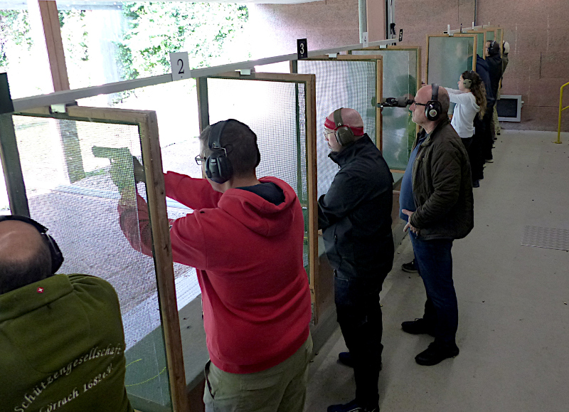 Dès 8 h 30, une dizaine de tireurs badois étaient au rendez-vous au stand de Marckolsheim, rejoints par une douzaine de membres du club local. Après un petit-déjeuner convivial, la compétition a pu débuter. Le programme comportait d’abord deux séries de 15 cartouches à l’arme de poing gros calibre, tirées à 25 mètres. Puis, les participants se sont affrontés à la carabine à air comprimé sur le stand 10 mètres, équipé de cibles électroniques. Enfin, un concours plus ludique de lancer de fléchettes a conclu les épreuves sportives.